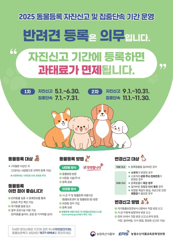정부는 동물등록 활성화를 위해 올해 두 차례 자진신고 기간과 집중단속 기간을 운영합니다.